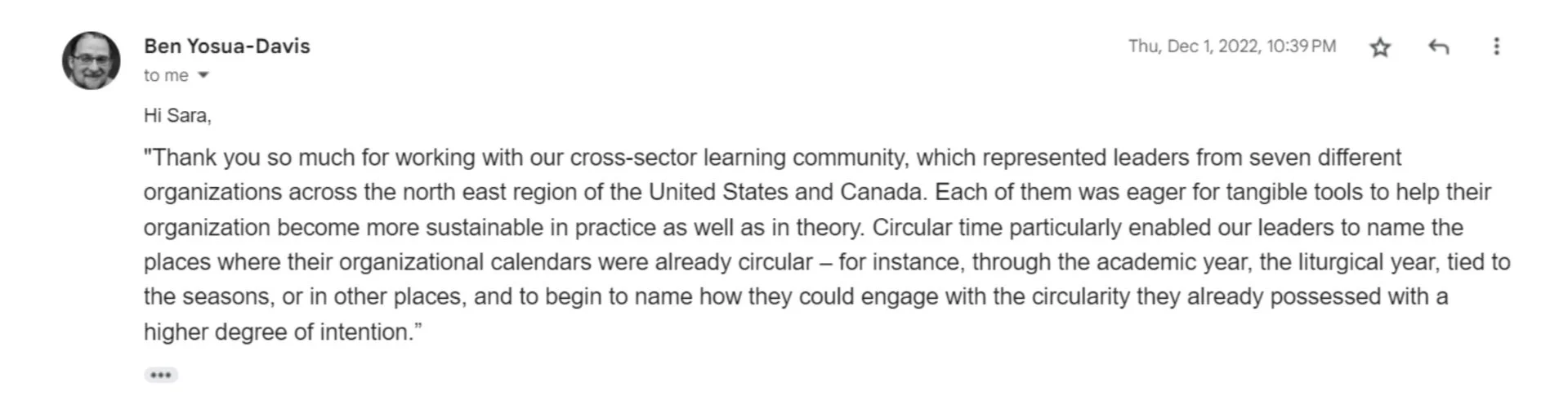 Circular Time calendars and the processes we have developed to engage with them provides a powerful, proven tools for organizations that seek to enable sustainability both internally and externally.